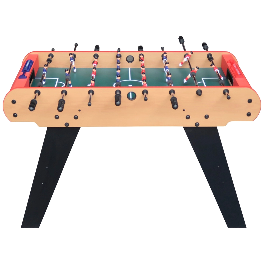 Baby-foot compact indispensable pour tous les passionnés de football souhaitant retrouver l’ambiance des salles de jeu à la maison. Avec ses dimensions de 122 x 61 x 78,75 cm, il offre un format idéal pour s’intégrer facilement dans une chambre, un salon ou une salle de jeux. Son design classique associé à un cadre en bois solide lui confère à la fois robustesse et style, tout en garantissant une bonne stabilité pendant les parties. Parfait pour des moments conviviaux en famille ou entre amis, il permet de s’affronter dans des matchs dynamiques et amusants.