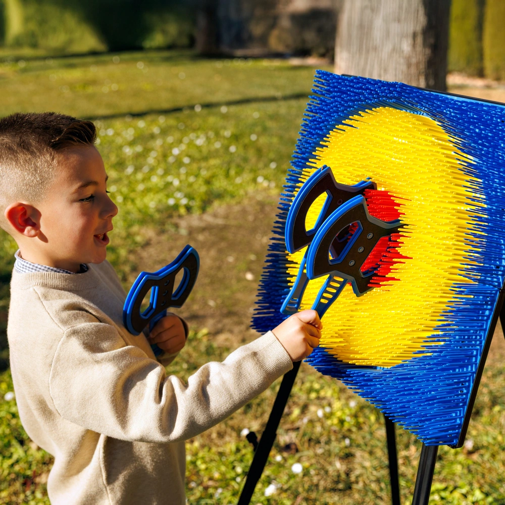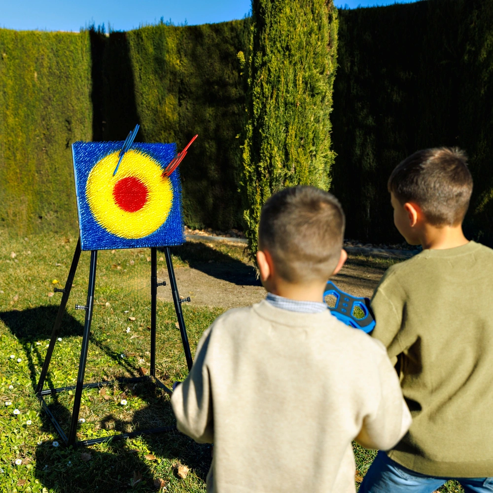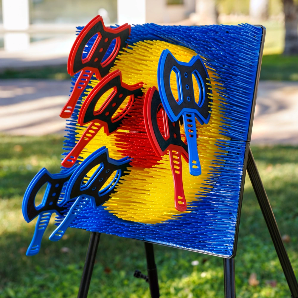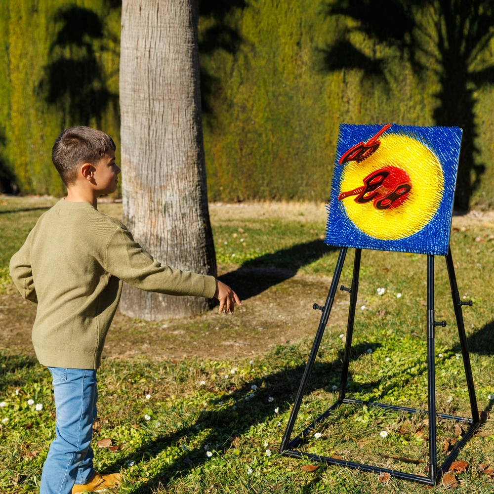 Le kit est pensé pour la compétition et le partage : il comprend six haches légères aux poignées ergonomiques, réparties en deux couleurs (3 rouges et 3 bleues) pour permettre des matchs en équipe épiques. Conçu pour un montage simple et sans stress, cet ensemble se déploie en un clin d’œil pour transformer n’importe quel espace en zone de défi. Une fois la session terminée, sa structure se démonte rapidement pour un rangement compact, ce qui le rend aussi facile à stocker qu’à transporter pour une après-midi chez des amis ou en vacances. C’est le jeu parfait pour développer la coordination œil-main et la concentration tout en s’amusant en toute sécurité.