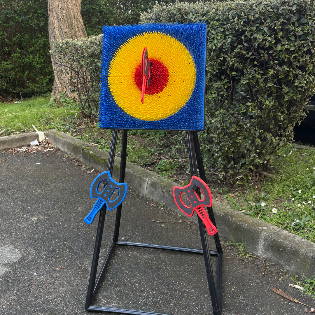 🎁 Contenu : 1 cible + 3 haches rouges + 3 haches bleues incluses