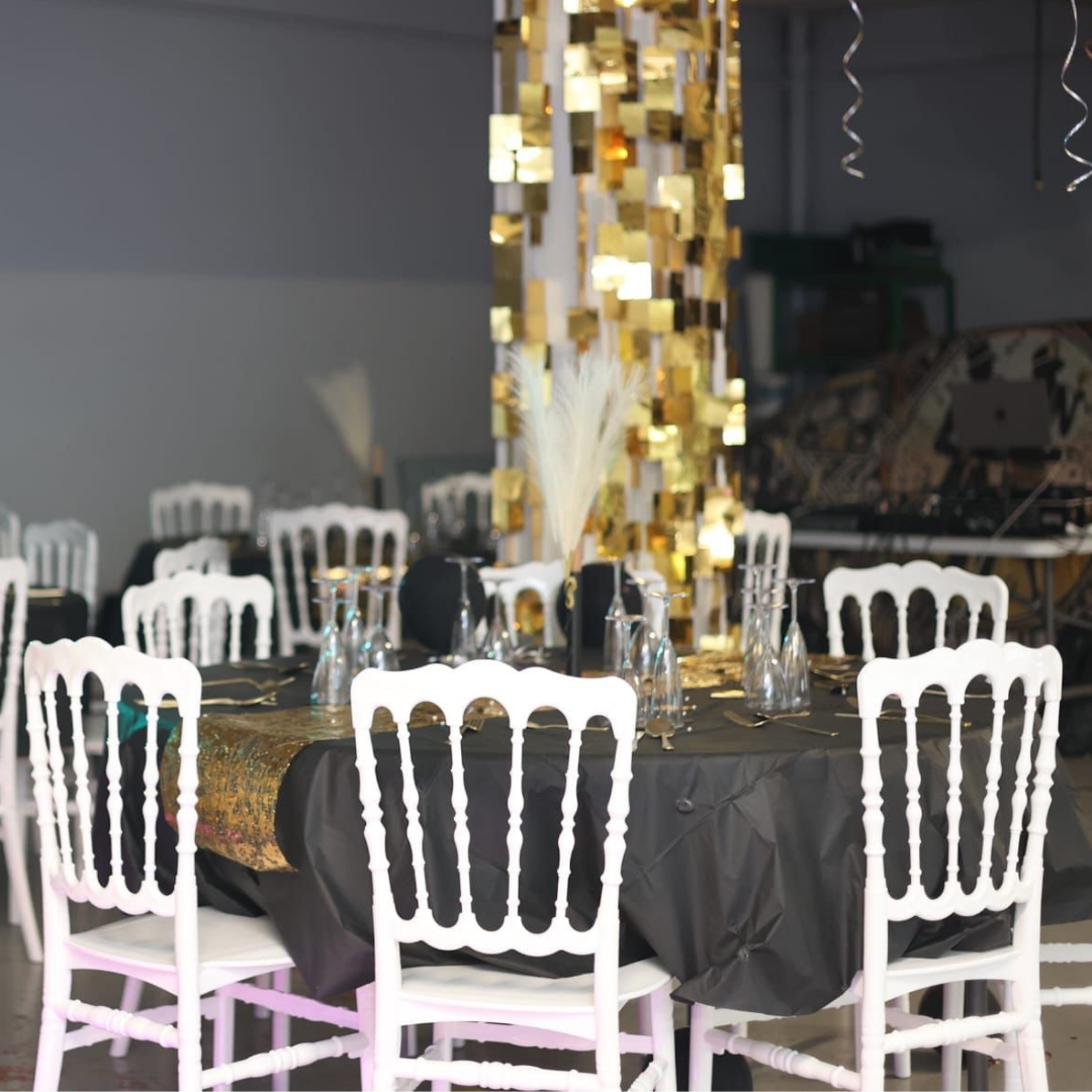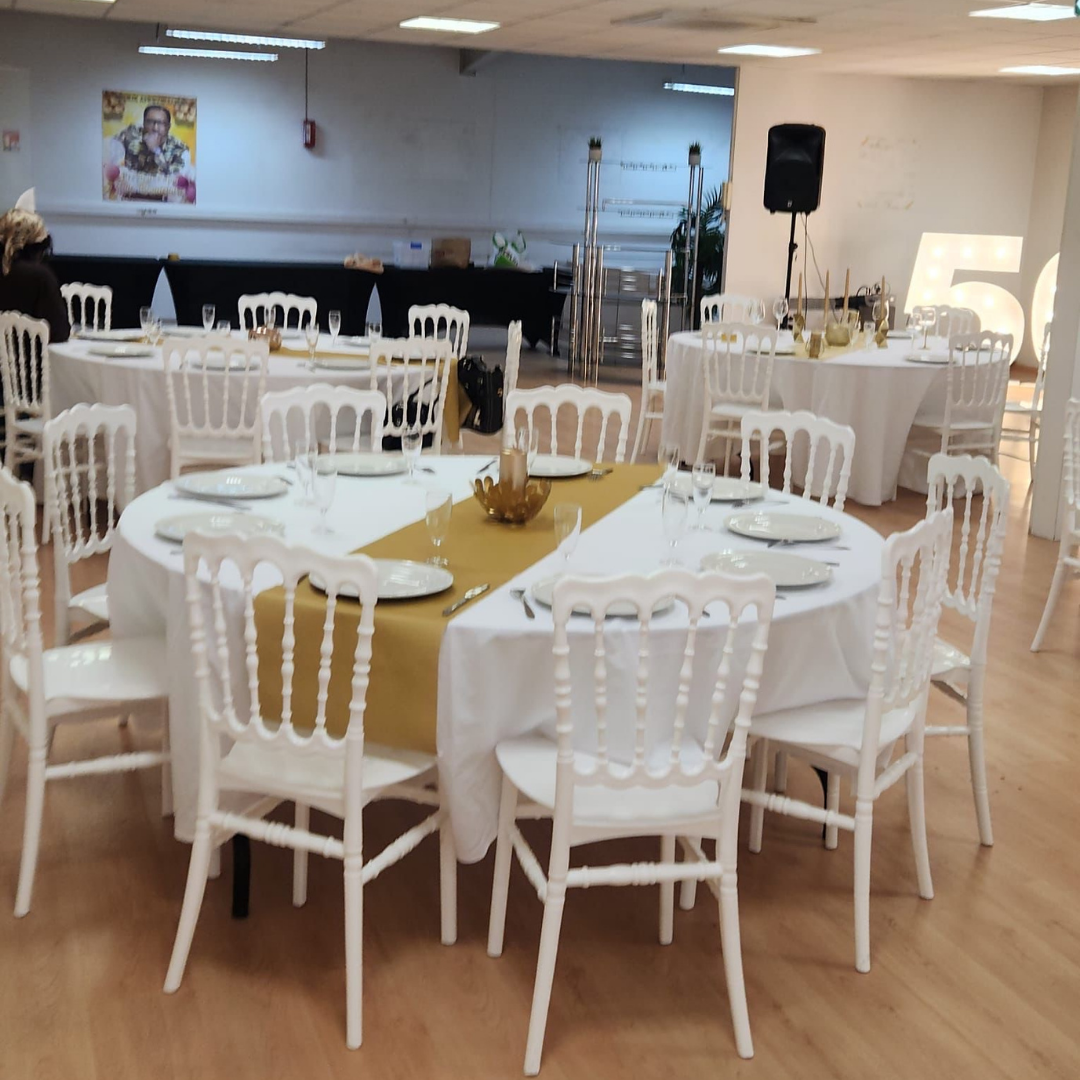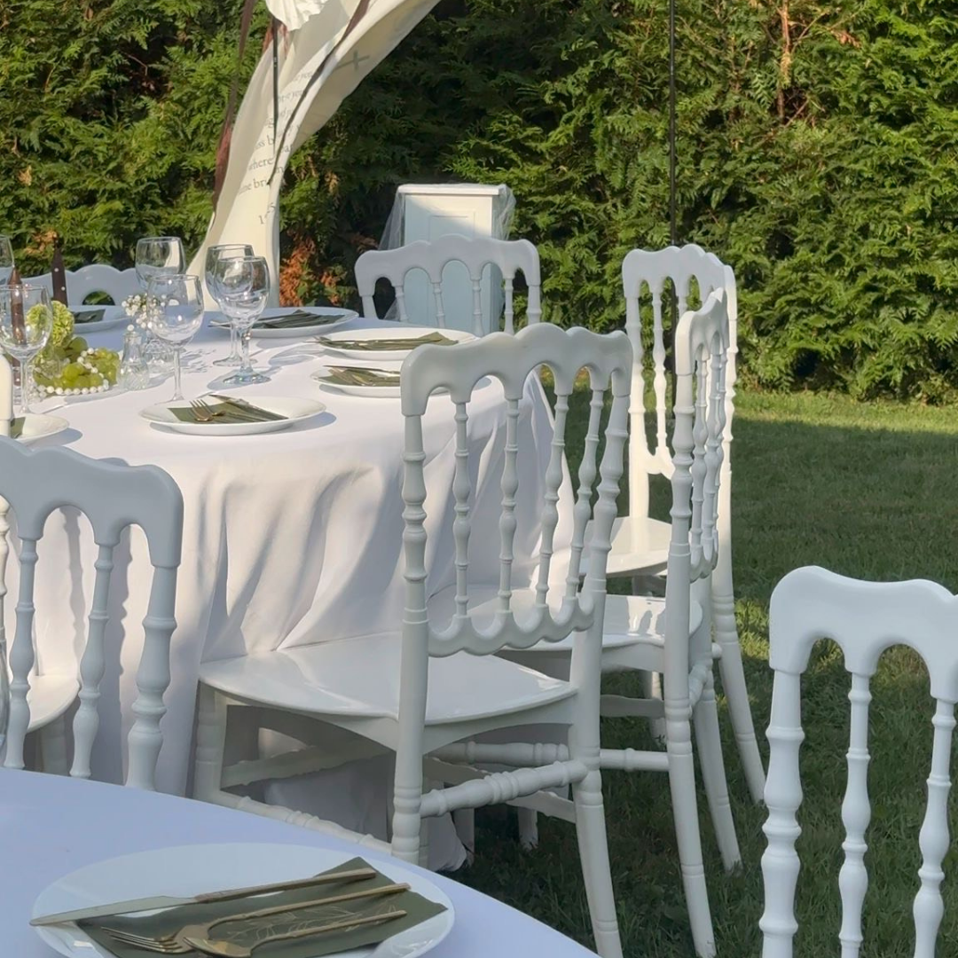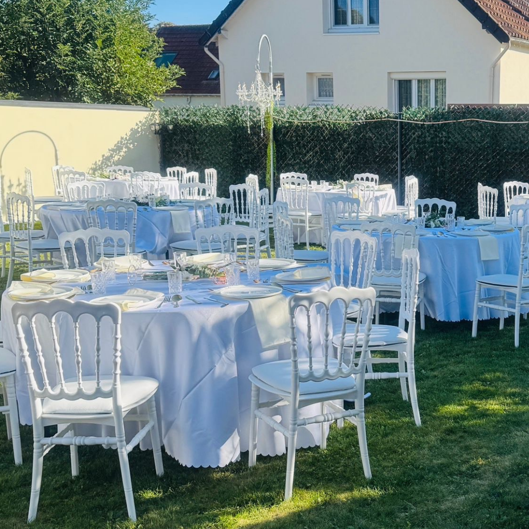 Faciles à disposer et à harmoniser avec les tables de réception, les chaises Napoléon permettent une mise en place rapide et assurent un rendu esthétique professionnel, idéal pour sublimer les espaces de réception.