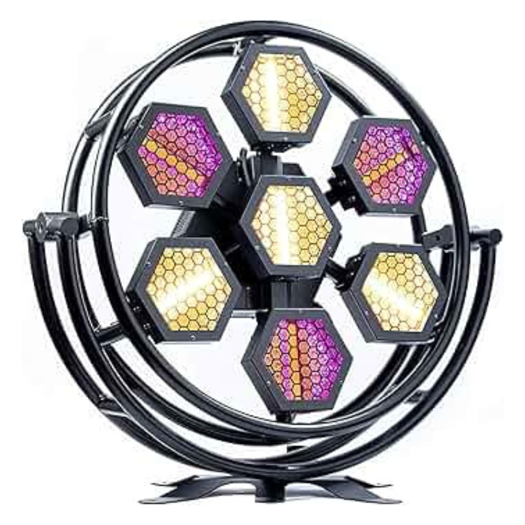 Grâce à ses 7 sources LED COB de 60 watts et à son format grand modèle, ce projecteur rétro événementiel offre une intensité lumineuse élevée et un rendu visuel puissant, idéal pour la mise en valeur de scènes, décors, pistes de danse ou espaces événementiels.