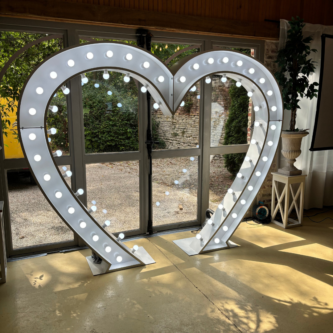 Avec ses dimensions imposantes de 2,60 mètres de largeur et 2 mètres de hauteur, ce cœur lumineux LED offre un impact visuel fort et élégant, parfait pour créer un point central décoratif, un fond photo, une mise en scène romantique ou une entrée spectaculaire. Sa structure en métal garantit une excellente stabilité et une présence professionnelle lors des prestations événementielles.