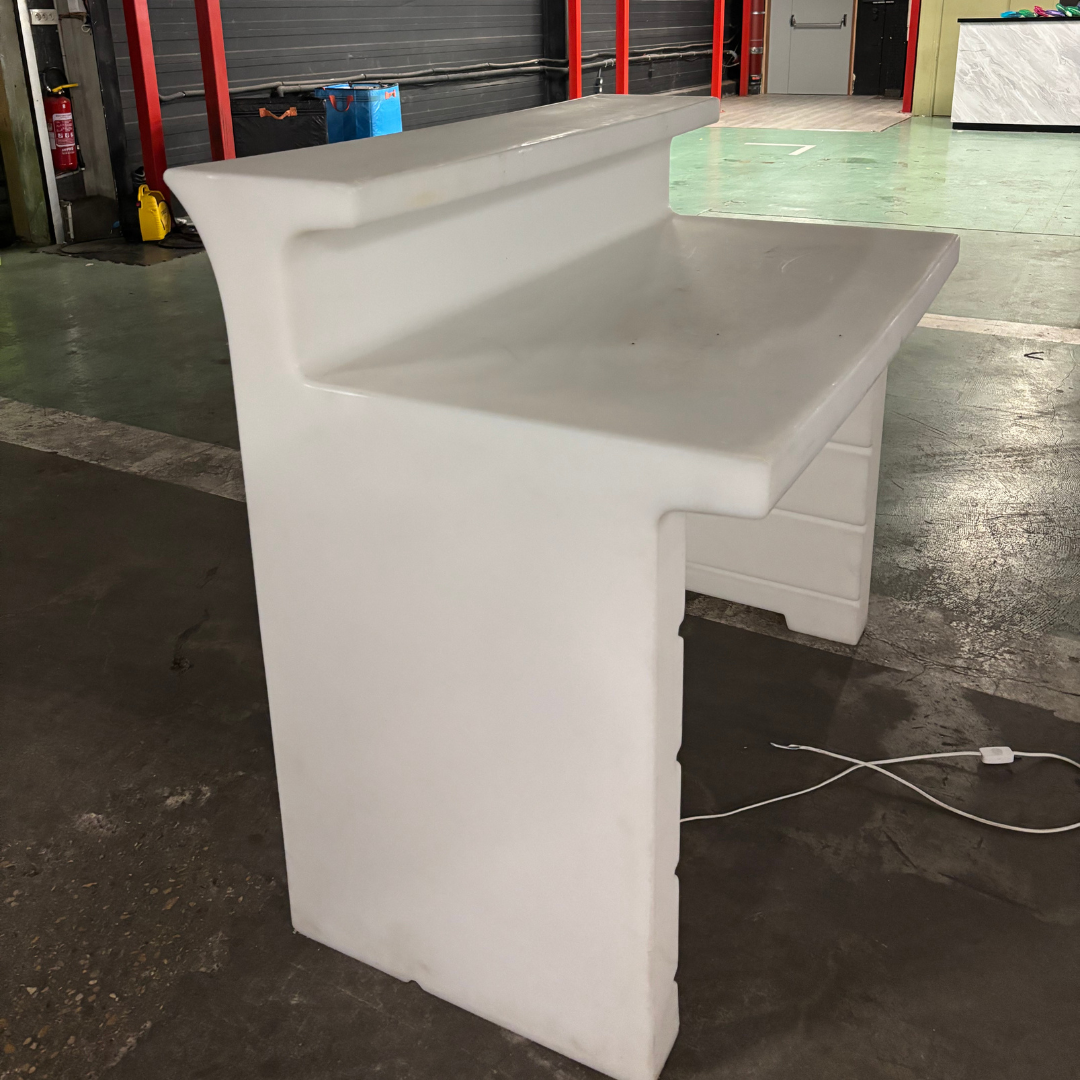 Grâce à son design droit et linéaire, ce comptoir événementiel permet une organisation efficace des espaces, facilitant le service des boissons, l’accueil du public ou la gestion de la billetterie. Il s’intègre parfaitement dans des configurations modulaires, seul ou combiné à d’autres comptoirs événementiels, pour créer un espace bar ou accueil structuré.