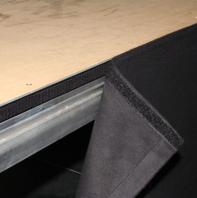 Jupe de scène 1 m × 1 m – Habillage textile pour plateau et podium