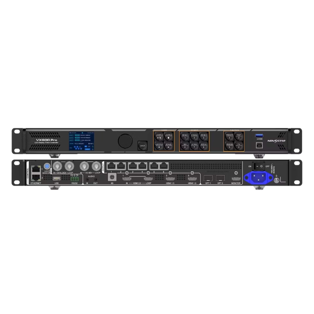 Nova 600 PRO – Processeur / contrôleur d’écran LED événementiel conçu pour le pilotage et le fonctionnement d’écrans LED, idéal pour mariages, concerts, soirées, événements professionnels, conférences et spectacles, en intérieur comme en extérieur abrité.