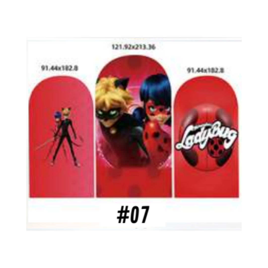 Ce set décoratif est spécialement conçu pour être utilisé avec une structure en métal fond arrondi (structure non incluse). Il permet d’habiller le fond afin de réaliser un coin photo, un espace gâteau, une décoration centrale ou un fond décoratif événementiel, parfaitement adapté aux univers Miraculous et Peppa Pig.