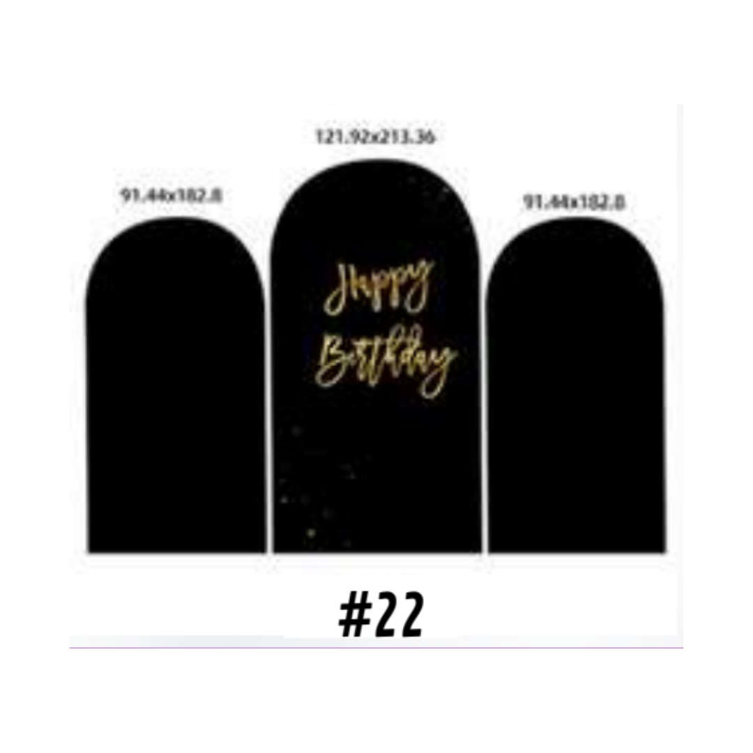 Set housse métal Noir Brillant / Noir Happy Birthday – Habillage décoratif pour structure fond événementielle